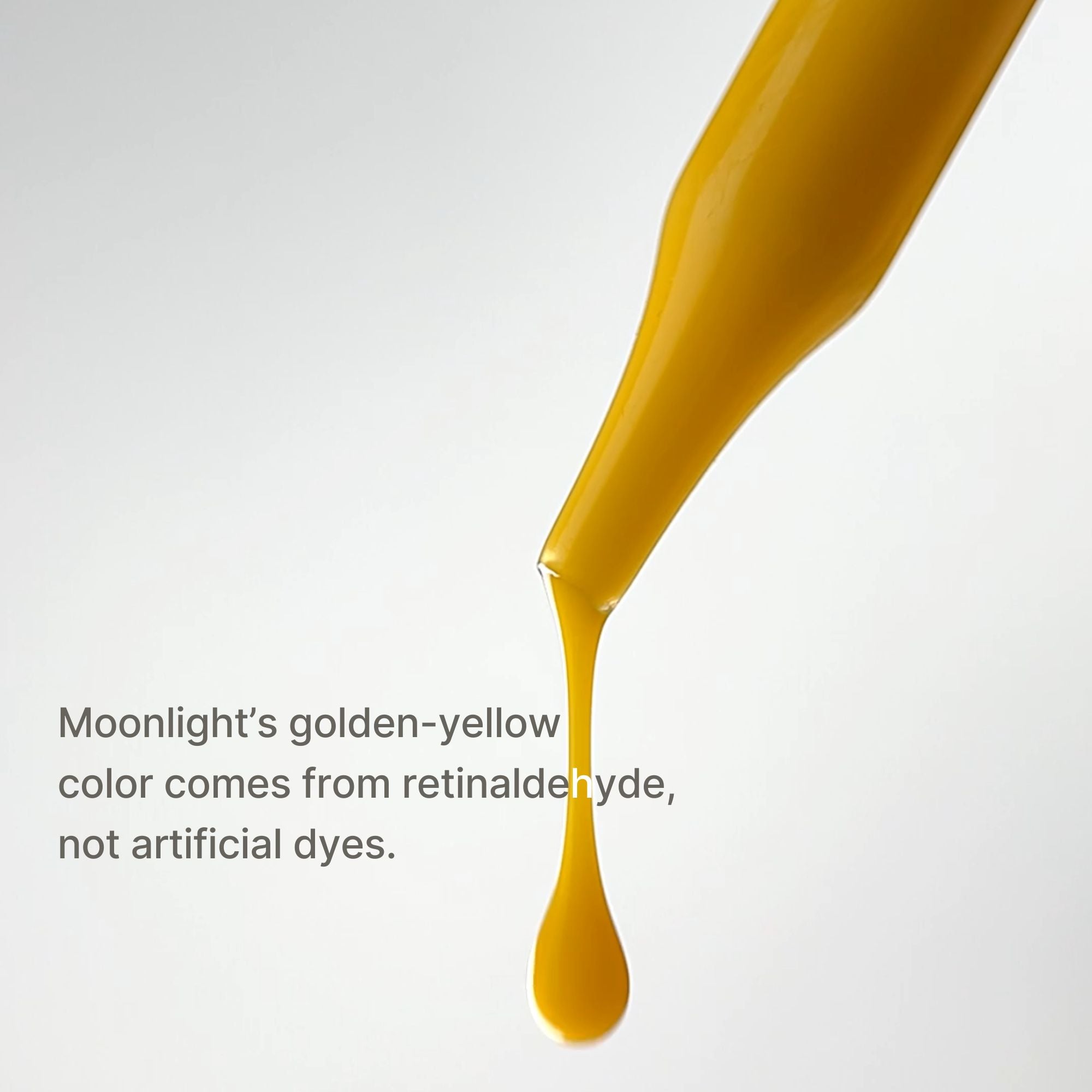 Retinaldehyde is naturally bright yellow in color. Since Moonlight is formulated with a high concentration of encapsulated retinaldehyde (0.11%), the serum has a natural bright yellow color. At Maelove, we never use dyes or fragrances. The color comes from the natural ingredients.