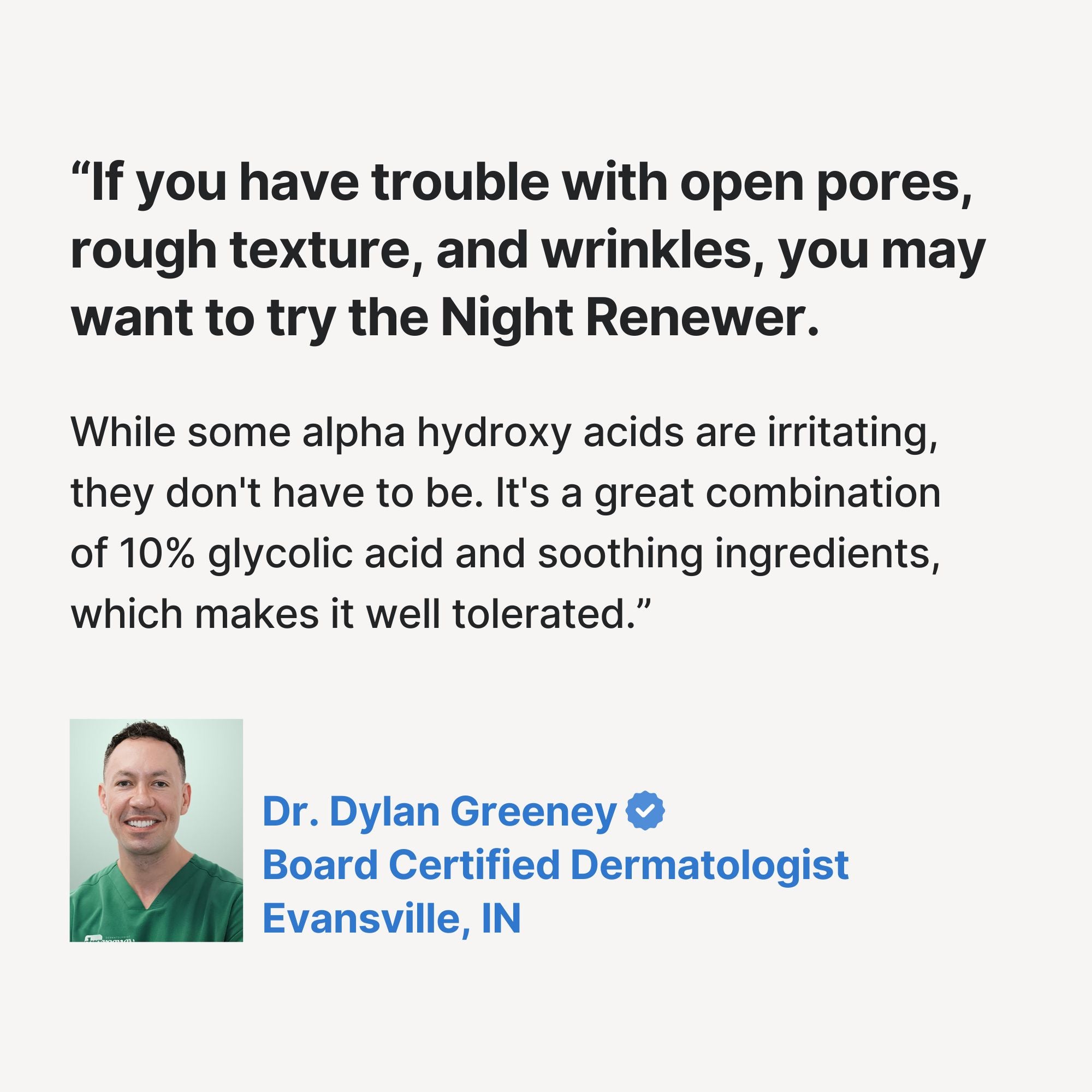 Dermatologists and customers love Night Renewer because it delivers chemical-peel-style benefits in a night cream format: