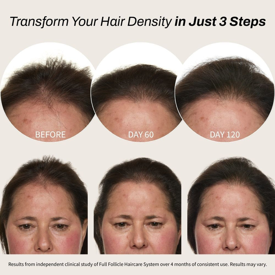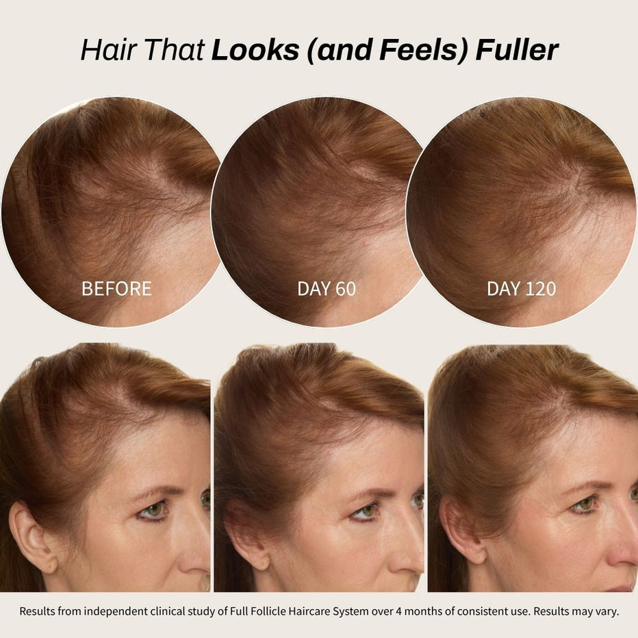 This advanced scalp serum is the first to simultaneously address multiple common causes of thinning hair: aging follicles hormonal changes, poor blood flow, and inflammation.